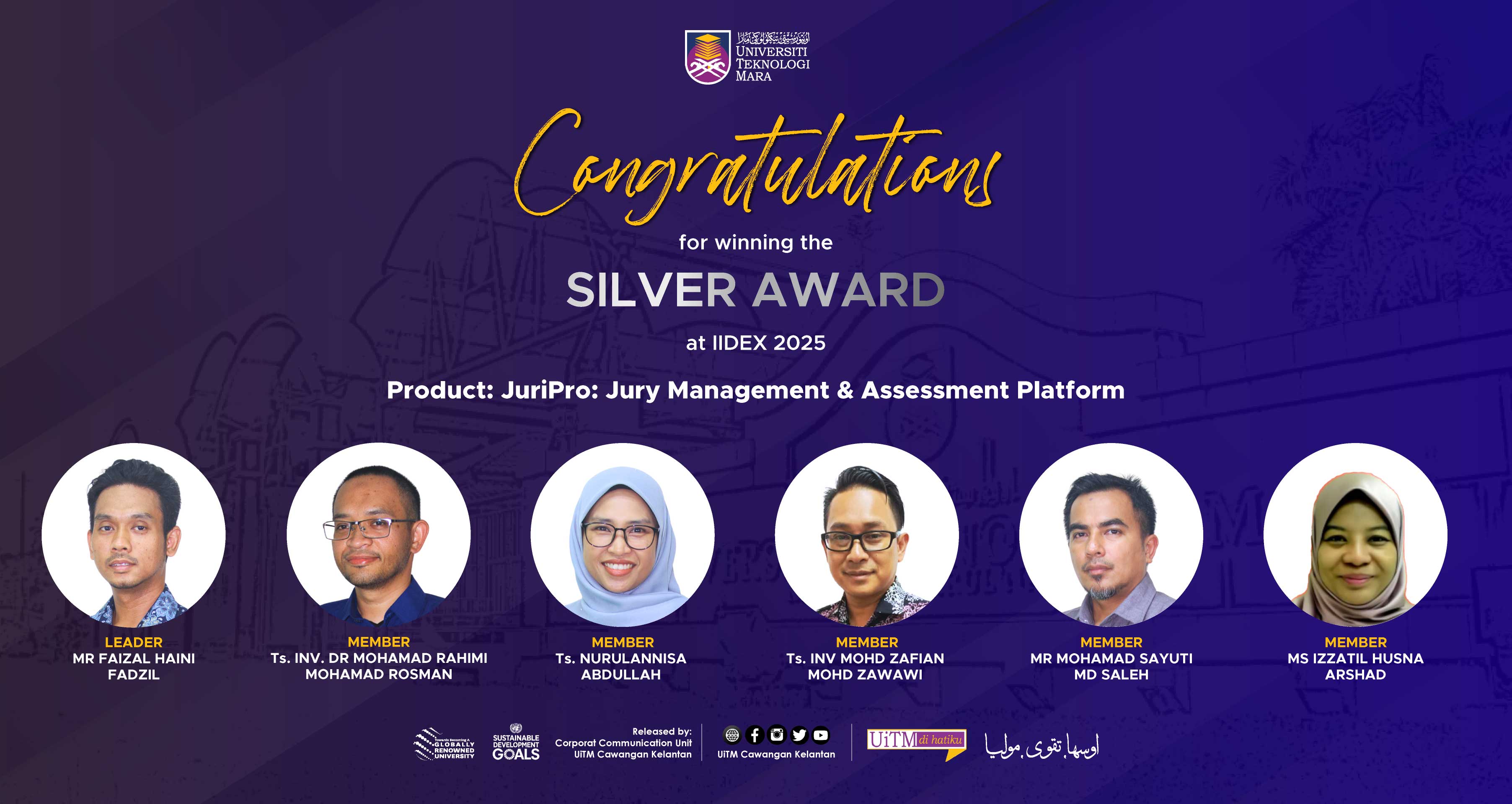 MACHANG, 4 November - Congratulations Mr Faizal Haini Fadzil and team members for winning the Silver Award at IIDEX 2025 with their innovative product JuriPro: Jury Management & Assessment Platform.
