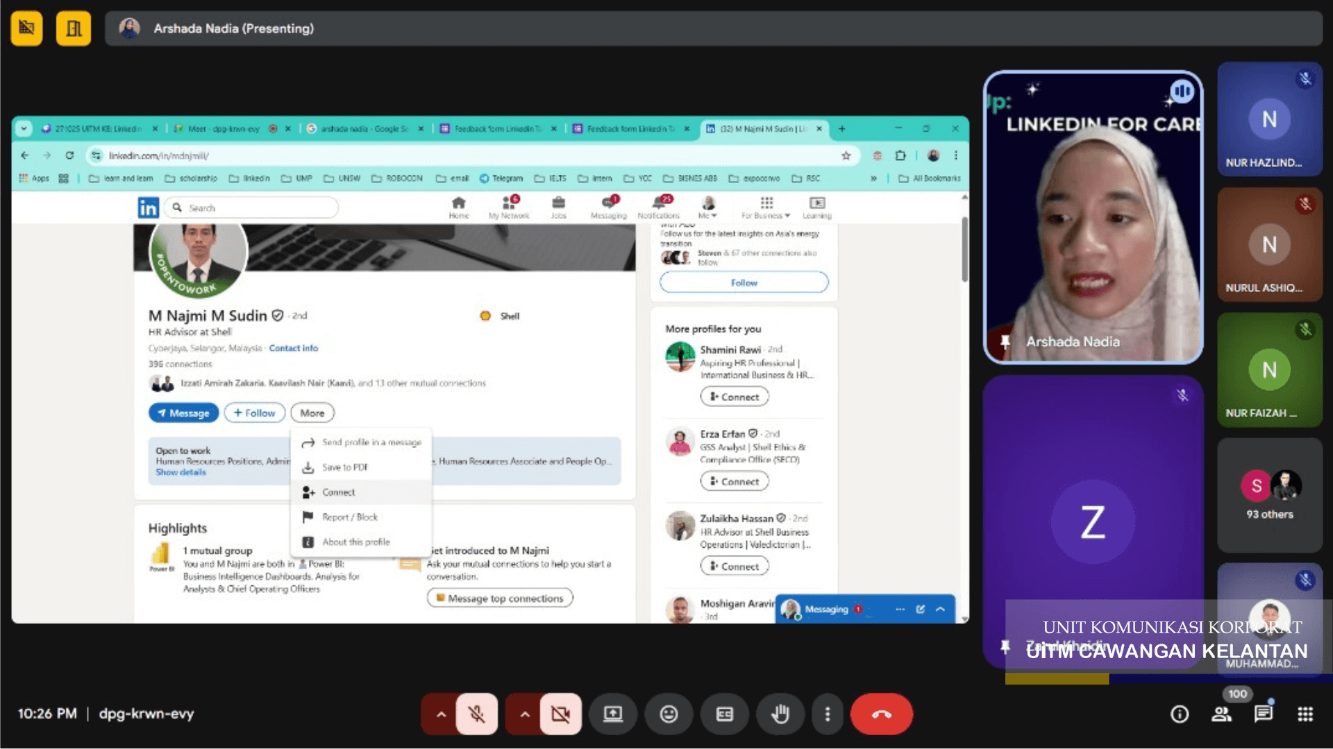 Secara keseluruhan, program ini mendapat maklum balas positif daripada peserta. Mereka berasa lebih yakin untuk membina identiti profesional, memahami peranan LinkedIn dalam pembangunan kerjaya, serta mula melihat kepentingan membina jaringan industri sejak di bangku universiti.